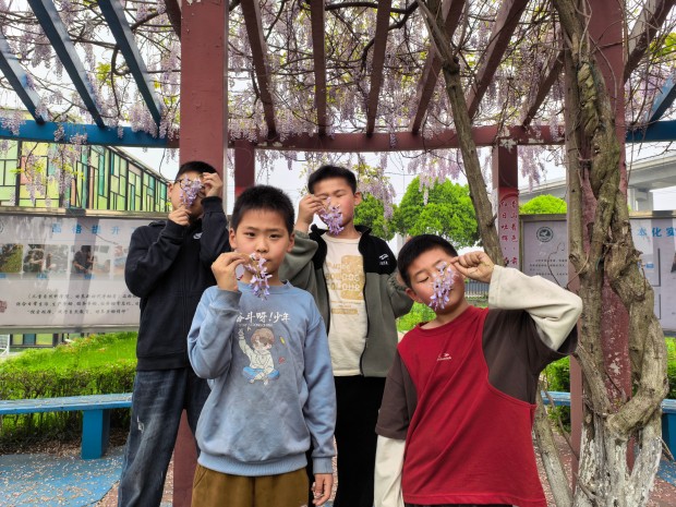 春和景明,繁花缀径。为深化普特融合教育理念,搭建普教与特教交流互动、彼此滋养的桥梁,让每一个孩子都能在平等、包容的环境中感受成长的温暖,新华实验小学携手新星实验学校共同举办“‘馨’花润童心 普特爱同行”普特融合主题活动,以紫藤花为载体,让普教与特教手拉手、心贴心,在共同体验中收获友谊、学会包容,让融合之花在欢声笑语中绚烂绽放。