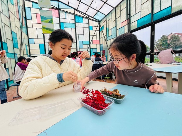 当晶莹剔透的滴胶包裹着淡雅的干花脱模而出,孩子们眼中满是惊喜。他们小心翼翼地捧着自己与同伴合作完成的作品,有的做成挂件,有的做成摆件,每一件都独一无二,承载着彼此共同的回忆。这个过程不仅锻炼了孩子们的动手能力,更让他们在协作中学会了沟通与包容,让友谊在指尖的温度中慢慢沉淀。