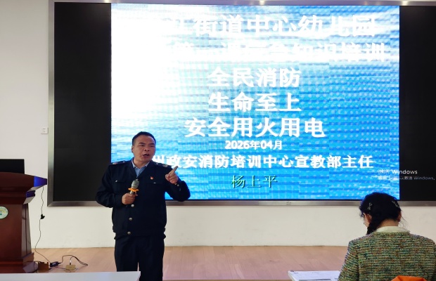 在消防安全培训环节,常州政安消防培训中心宣教部主任杨上平以“全民消防、生命至上、安全用火用电”为主题展开培训。杨主任结合国内典型火灾事故案例,通过真实画面与惨痛教训,深入剖析火灾诱因、蔓延规律及严重危害,并针对新能源电池爆炸等新型火灾风险,讲解防范要点,让教职工深刻认识到消防安全的重要性。同时,杨主任细致讲解幼儿园常见火灾隐患、消防器材使用方法,重点示范干粉灭火器“提、拔、握、压”操作口诀,明确火灾应急疏散流程与注意事项,帮助教职工熟练掌握防火、灭火、逃生核心技能。