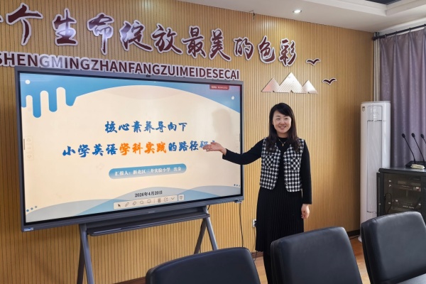 为发挥优秀教师示范引领作用,助推乡村青年教师专业成长,提升乡村学校英语学科建设水平与学生核心素养,4月21日上午,常州市第五轮沈金优秀教师城乡牵手第十二次活动于常州市新北区汤庄桥小学举行。新北区三井实验小学沈金主任、汤庄桥小学英语组全体教师全程参与此次活动。