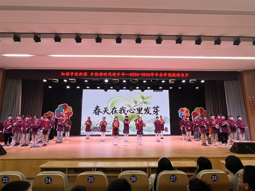 春风送暖,万物生长;童心向党,向阳盛放。为厚植爱国情怀,引领队员们在实践中守护自然、探索真知,4 月 20 日,龙虎塘第二实验小学隆重举行“红领巾爱祖国,争做新时代好队员”主题升旗仪式。本次仪式由五 8 海豚中队承办,以春之守护为笔,绘就少年奋进的最美模样,让青春在春日里尽情盛放。