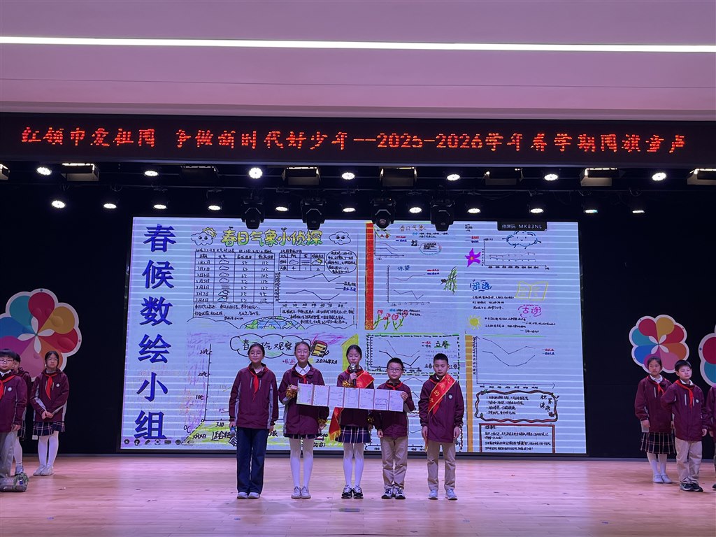 春候数绘小组:队员们每日观测气温、绘制统计图,搜集春日谚语,用数据与民俗智慧读懂春天。他们将自然观察与健康守护结合,提醒同伴科学作息、关爱身体,做春日里的健康小卫士。