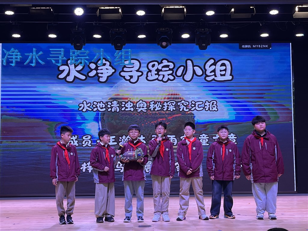 净水寻踪小组:聚焦校园池塘水质问题,队员们动手搭建生态景观鱼缸,在探索中读懂 “养水” 奥秘。他们查资料、勤实践、善思考,既收获科学知识,更树立起珍惜水资源、守护水环境的责任担当。