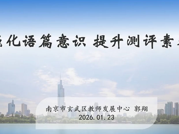 南京市玄武区教师发展中心郭翔老师聚焦语篇教学与命题测评,从语篇基础理论、选用、改编、命题设计等板块展开讲解。郭老师介绍了弗莱士文本难度测评工具,规范课内外科普语篇选用标准,从题型框架、文字难度、配图设计三方面指导语篇改编。同时强调命题需在语篇中考查知识,善用多模态与非连续性文本,注重知识迁移转化,结合学段特点给出逆向教学设计、强化读写结合等教学启示,助力教师提升语篇测评素养。