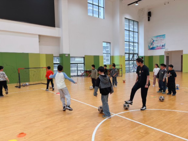 为深化体育课堂教学改革,落实“健康第一”教育理念,提升体育教师专业教学能力,4月9日,龙虎塘第二实验小学体育组开展足球公开课教研活动。本次公开课由王金宇老师执教三年级《小足球正脚背运球与射门游戏》,体育组全体教师参与听课、评课,教研活动扎实高效、氛围浓厚。