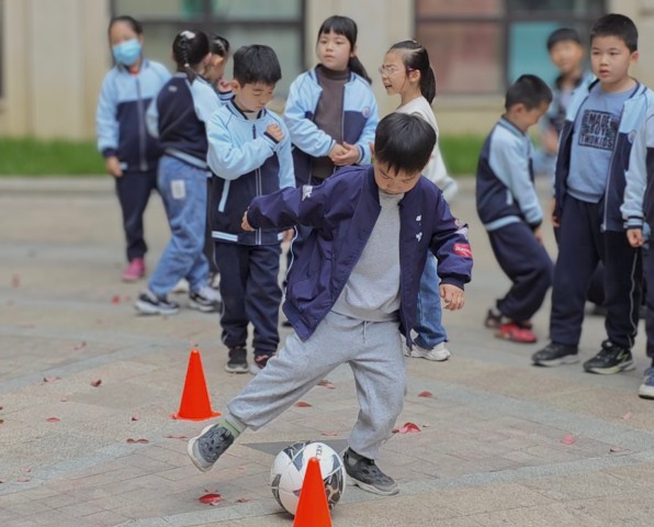 4月,在这春意渐浓时节,我园新一届大班传承与创新结合,抓住“苏超足球联赛”契机,融合足球元素纷纷进入社区开展游戏,与周边居民互动,化身为小小足球宣传员,传递着运动热情和足球踢“嗨”的激情。