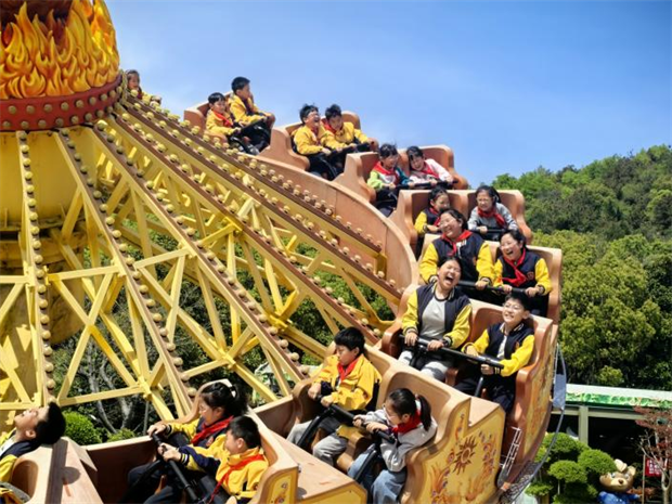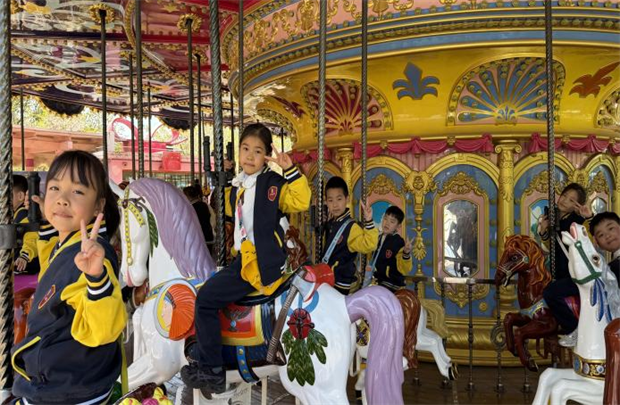 欢乐不停,趣味升级。游乐园区域成了释放童真的天地:旋转木马载着梦想起伏,过山车呼啸而过激起尖叫与大笑,碰碰车碰撞出最清脆的友谊。在老师的全程看护下,大家自觉排队、轮流体验。阳光洒在每一个红扑扑的脸蛋上,笑声久久回荡在半空。