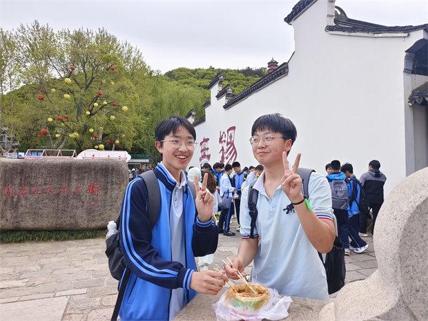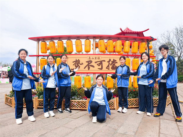 午后自由活动时间,惠山公园的每个角落都跃动着中天学子的身影:有人在九龙壁前研究浮雕纹样,有人在杜鹃园里辨认植物品种,有同学躺在草地上,看云从树梢飘过,轻声说:“真想时间停在这里。”是啊,惠山的春天年年如约,而属于这群少年的春天,却只有这一个。