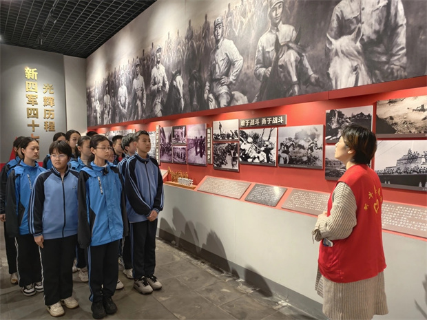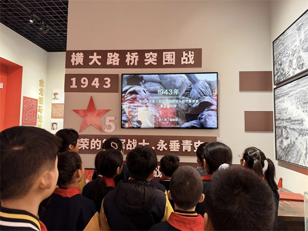 祭扫仪式结束后,师生们走进红色记忆展厅,开启一场穿越时空的初心寻访之旅。展厅内,在一件件饱经沧桑的实物、一段段感人至深的事迹、一幅幅定格历史的画作前驻足凝视。横大路桥战役的烽火岁月、先烈们艰苦奋斗的革命精神、舍生取义的家国担当,穿越时空直抵人心。同学们认真聆听讲解,细心记录感悟,深刻体会到今日和平生活来之不易,更明晰了新时代青少年的责任与担当。
