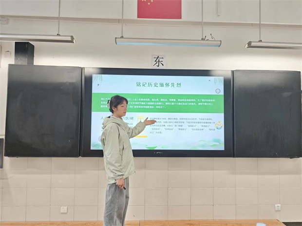 为让全体学生深刻理解清明内涵,常州市中天实验学校以班级为单位,利用晨会课开展清明节主题学习活动,将传统文化教育与爱国主义教育有机融合,让历史与精神在课堂中生根发芽。课堂上,老师们以生动鲜活的方式,为同学们细致讲解清明节的历史渊源、文化内涵与传统习俗。同时以 “铭记历史、缅怀先烈” 为核心,讲述革命先辈浴血奋战的感人故事。通过主题学习,“铭记历史、缅怀先烈、珍爱和平、开创未来” 的信念深植于心,革命精神的火种在校园里悄然传递,为后续祭扫活动奠定了坚实的思想基础。