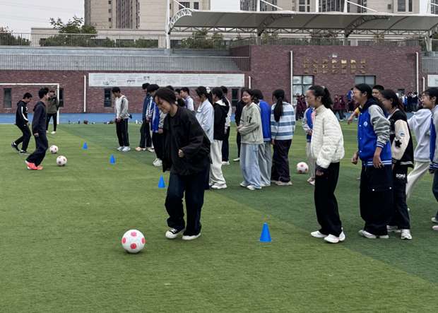 滨江中学始终将校园足球纳入学校整体发展规划,构建了“课堂教学+课余训练+赛事活动+文化浸润”四位一体的校园足球发展体系,严格落实每周一节足球课的教学要求,将足球技能、规则礼仪、体育精神融入日常教学,让每一名学生都能掌握足球基本技能,感受足球运动的魅力。