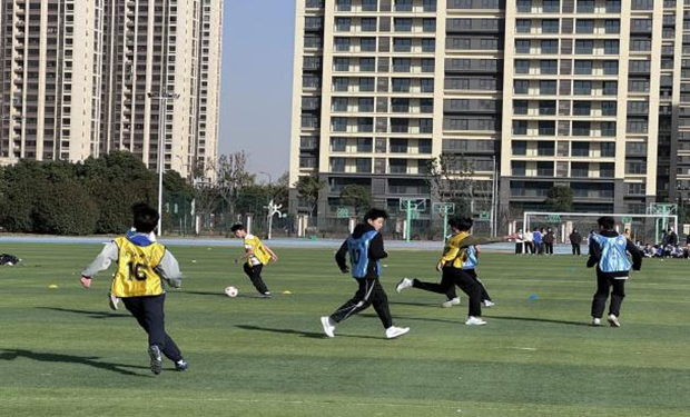 课余训练中,学校组建专业女子足球队,采用“专业教练员+校内体育教师”双轨训练模式,结合青少年身心发展规律,科学制定分层训练计划,精准覆盖体能储备、技能精进、战术磨合全环节。专业教练员负责前沿技术与战术传授。体育教师负责强化基础体能、规范动作细节,通过日常集训、周末强化、假期专项,形成常态化训练体系。同时,学校以赛促训,常态化举办校园足球联赛、班级对抗赛、校际友谊赛,搭建实战平台,让队员在赛场中锤炼意志、提升技战术水平;积极组织队伍参与市、区级赛事,以高水平竞技检验训练成果,打造具有滨江特色的校园足球赛事,助力学子在绿茵场上强健体魄、逐梦成长。