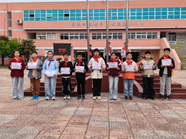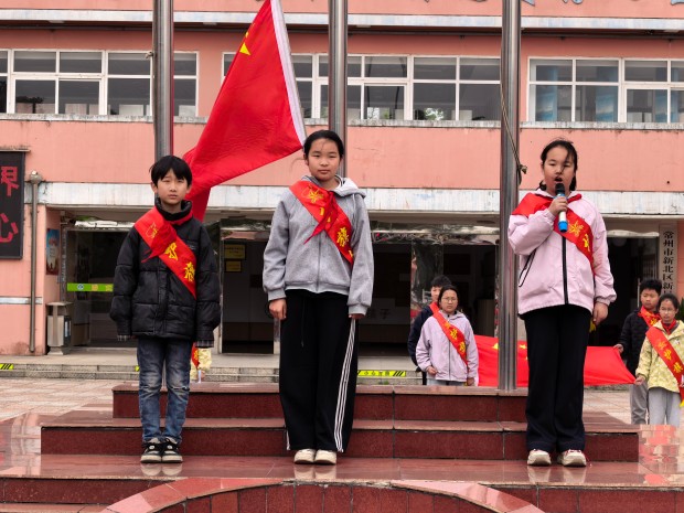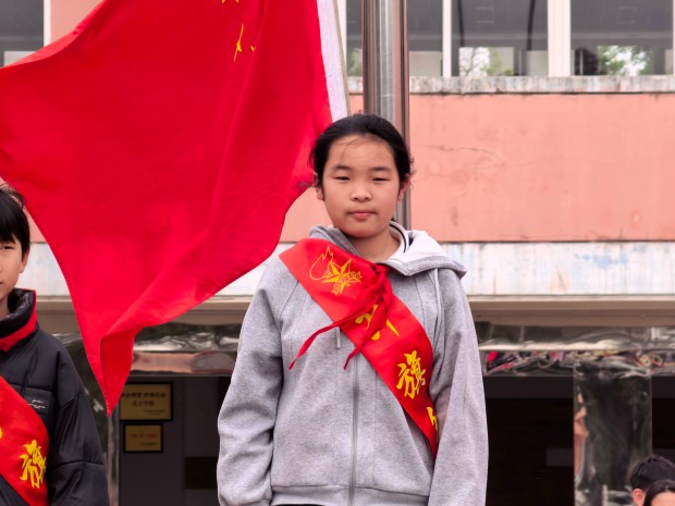 护旗手徐贤姝:大家好!我是来自五(1)中队的徐贤姝。今天能担任护旗手,站在国旗下,我心里满是激动与荣幸,也特别感谢老师和同学们给予我的信任与认可。
