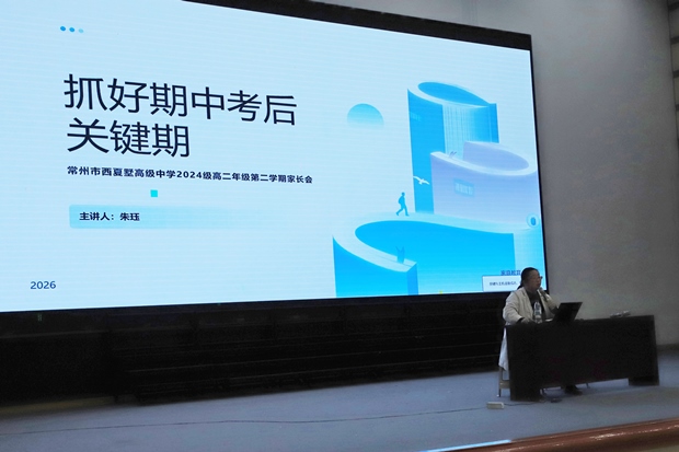 为进一步凝聚家校育人合力,精准把握高二年级承上启下的关键阶段,引导学生科学复盘期中考试、调整学习状态、培育阳光心态,4月26日下午,西夏墅高中召开高二年级期中家长会。本次家长会以“心有热忱,行有规矩”为主题,聚焦期中考后心理调适、学习方法优化等,与家长们共话成长、共促发展。