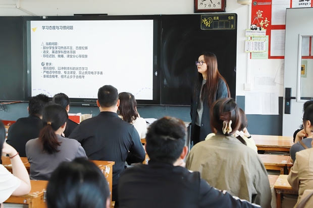 专家讲座结束后,各班开展班级交流。班主任围绕半学期以来的学习状态、日常表现、纪律习惯、期中考试学情等与家长深入沟通,分析优势与不足,给出具体可操作的建议,并明确后续班级管理与家校配合重点,让家校共育更精准落地。
