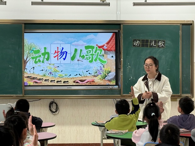 活动中,首先由柳凯燕老师执教《动物儿歌》。课堂以“动物”情境贯穿始终,引导学生认识“虫字旁”系列生字,感受形声字的构字规律。教学环节层层递进,从读准字音、读清节奏到读出趣味,较好地契合了低年级学生的认知特点。尤其在创编环节,教师抓住典型句式,鼓励学生展开想象,锻炼语言表达。