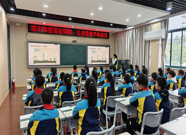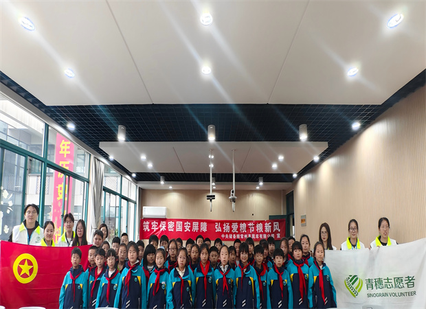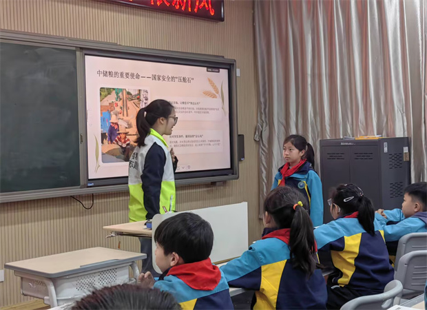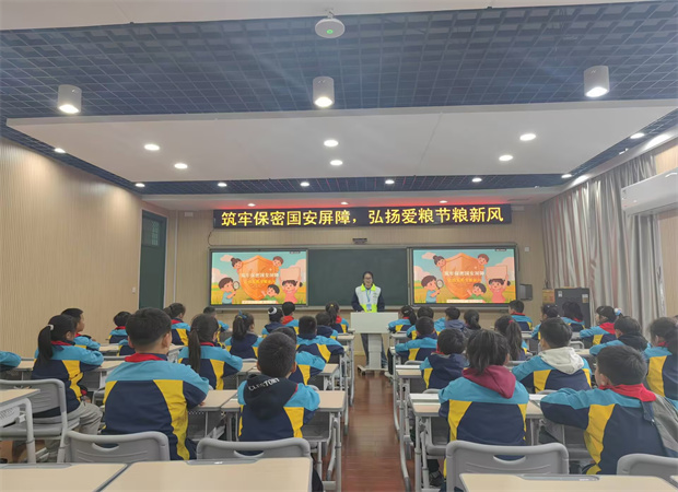 结合中储粮“大国粮仓”的职责使命,讲座还科普了粮食收储、科学养护等全流程知识,解读了稳市、保供、护农的重要作用。现场通过互动问答,引导学生树立“节粮减损、人人有责”的意识,倡导光盘行动、按需取餐、剩餐打包等良好习惯。孩子们认真聆听,积极发言,纷纷表示要争当护粮小卫士和保密小先锋。