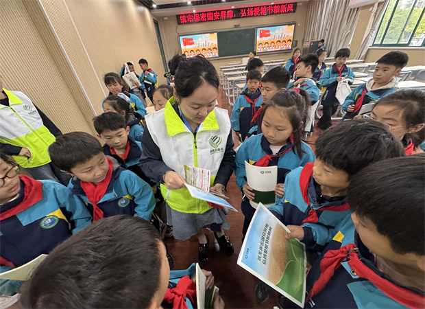 4月28日下午,细雨绵绵,暖意融融。中央储备粮常州直属库有限公司组织员工走进常州市新北区罗溪中心小学,结合全民国家安全教育日,开展以“筑牢保密国安屏障,弘扬爱粮节粮新风”为主题的教育活动。活动通过国防科普浸润与主题宣讲赋能双轮驱动,将保密教育、国家安全与粮食安全有机融合,进一步强化了师生的安全意识,厚植节粮理念。