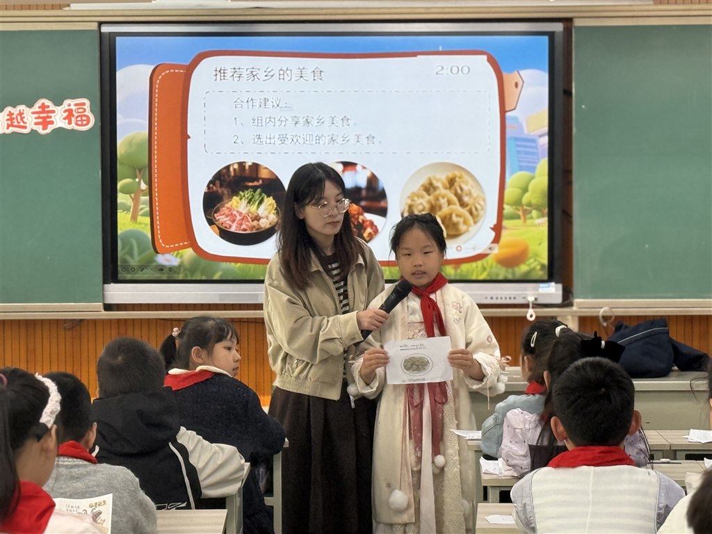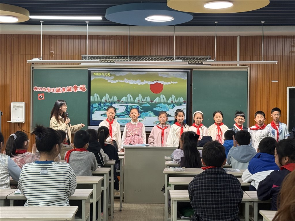 三井实验小学的沈金鑫老师带来《我们的生活越来越幸福》。沈老师以“五一假期”的规划为切入点,巧妙链接学生的生活实际,通过情境模拟、小组讨论与Ai互动等方式,引导学生在对比中感知生活变迁,在对话中体悟幸福真谛;课堂既扎根儿童经验,又悄然植入家国视野,让“幸福”二字从具象感知升华为价值认同。