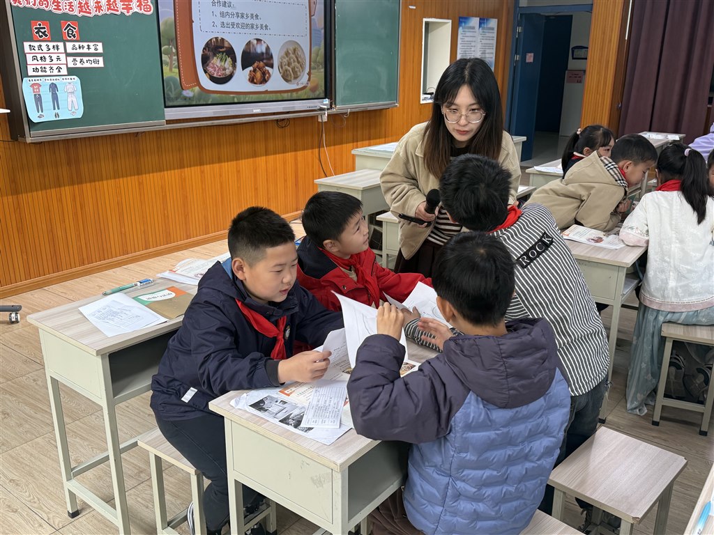 新桥第二实验小学张海莉老师进行《我们的生活越来越幸福》同课异构。张老师以“爷爷归国”的情景为纽带,将宏大叙事落于细微情感。从衣食住行今昔的对比,极大地激发了学生的民族自信心和自豪感。小组讨论,实践探究、视频展播等多种形式,让学生在真实触摸时代脉搏中,理解“幸福”不仅是个人感受,更是国家发展、文化自信与制度优势的生动回响。