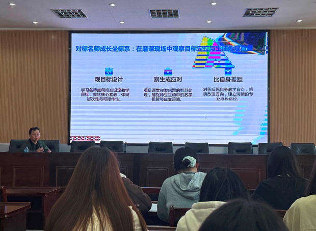 讲座中,专家创新性地引入“成长坐标系”这一概念,将名师的成长路径具象化。专家指出,青年教师的专业发展,横坐标应是“课例研磨”的实践积累,纵坐标则是“理念更新”的认知跃迁,而原点则是对“教学目标”的精准定位。