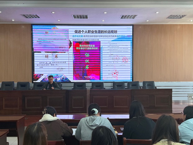 颁奖环节,王强校长、薛杉会长、汤本宏副校长、陶志强主任为获奖教师颁发荣誉证书。获奖教师们手持证书,面露喜悦,这不仅是对他们个人教学能力的肯定,更是“青蓝工程”师徒结对成果的集中展示。王强校长在致辞中寄语全体新教师:“路虽远,行则可至;事虽难,做则可成。希望你们以此为起点,向着‘一年合格、两年新秀、三年骨干’的目标坚实迈进。”